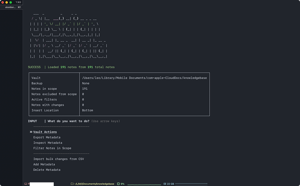 To do this we will use Obsidian Metadata. A Python tool to edit your notes.