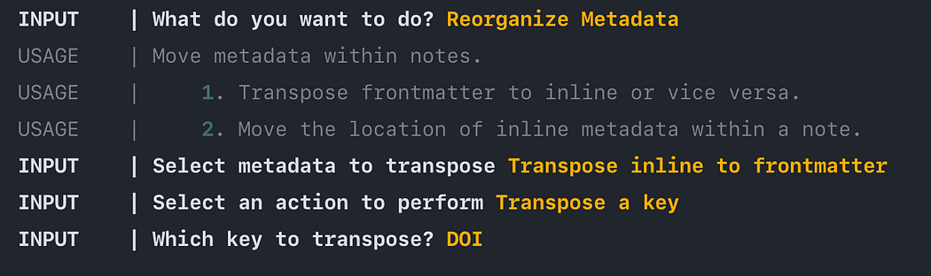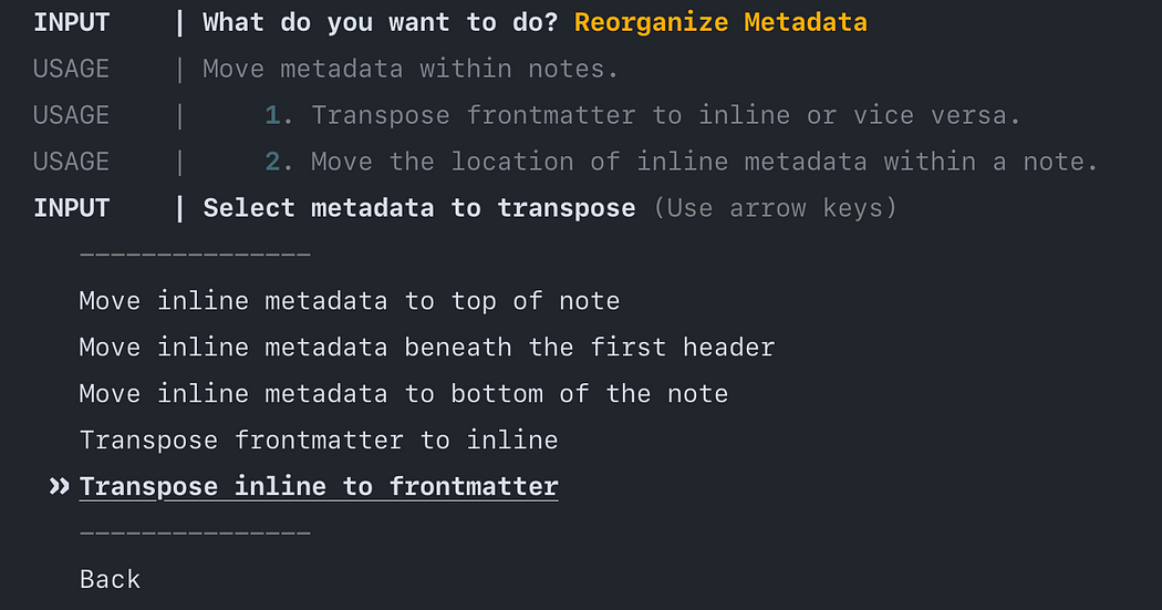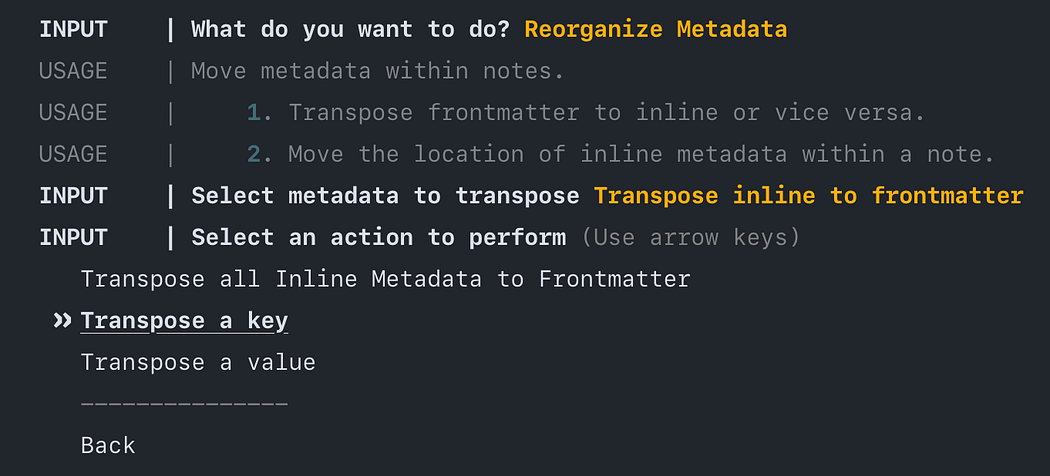 Now move to "Transpose inline to frontmatter" and again click Enter.