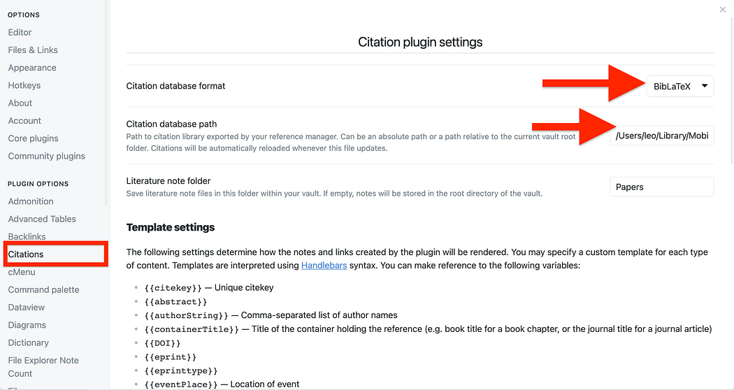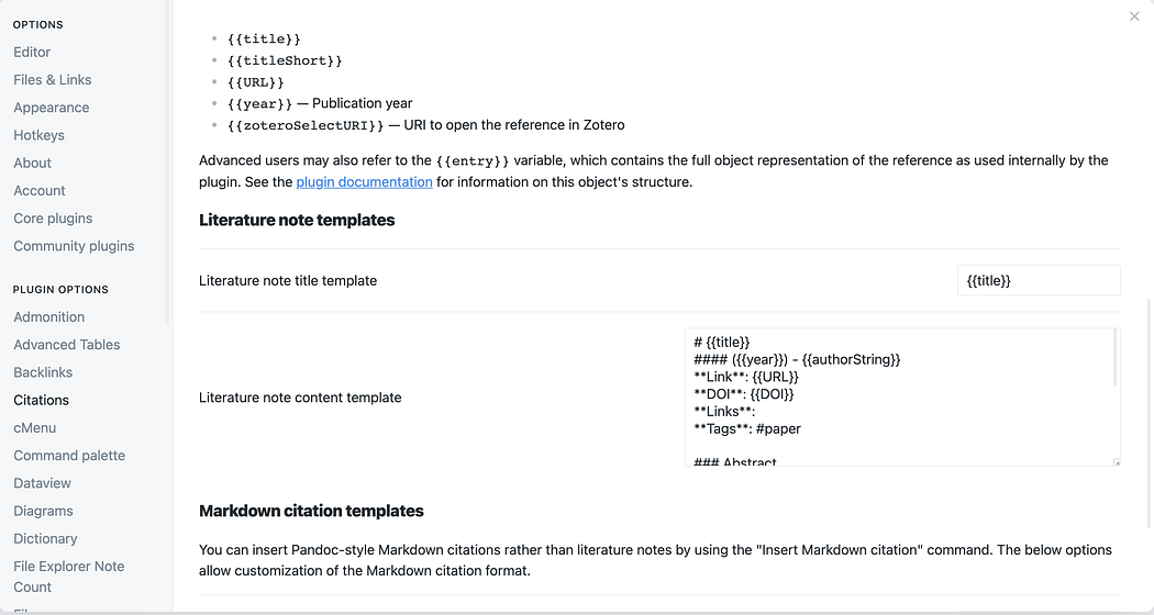 You can then scroll down to the template settings and customise how your literature notes will be created: