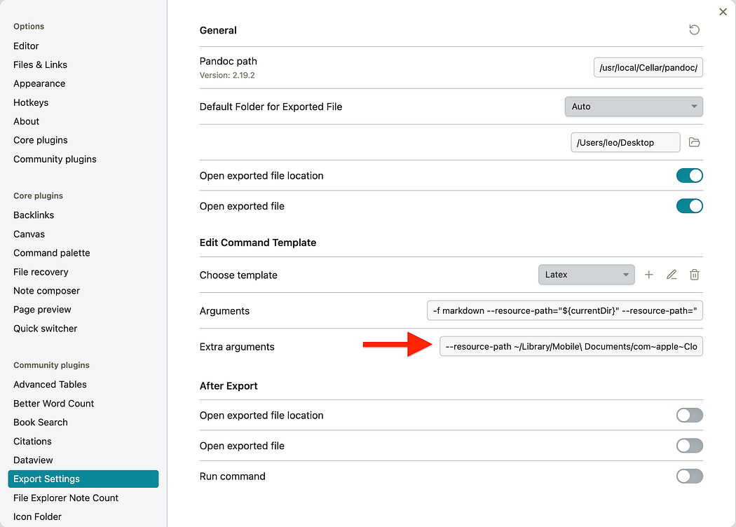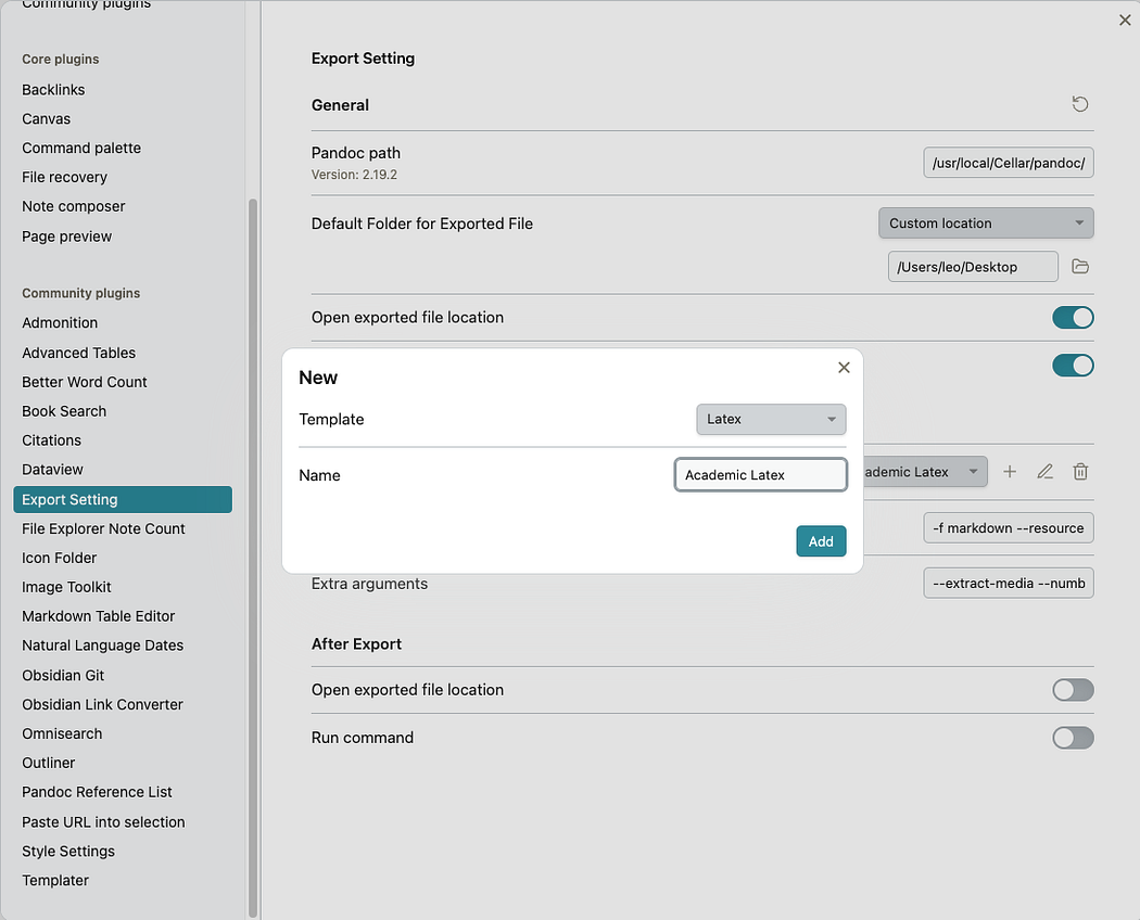 Finally, we set up the Obsidian Enhancing Export plugin with Pandoc to generate Latex, Word, and PDF documents to then import to Overleaf or send to other authors as a draft.