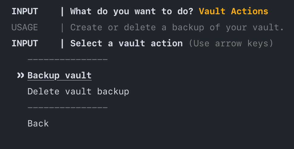 Let's back up the vault by going to Vault Action and then Backup Vault