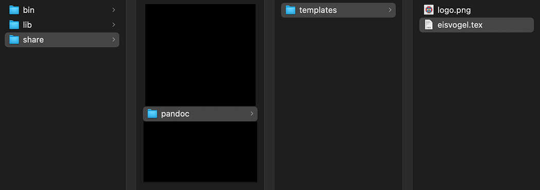 Now, create another folder called "templates" and place the eisvogel.tex file in there. Your folder should look like this: