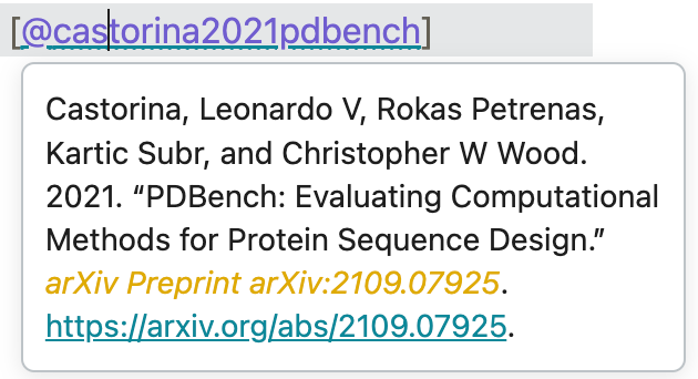 If you have installed the Citations plugin in Obsidian, inserting a citation is as simple as: